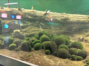 人の頭くらいある大きいマリモを見て、お土産で買ったマリモ育成キットをここまで育てる!と娘は意気込んでいました(笑)