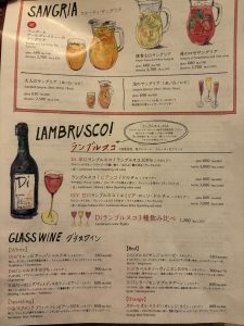 ランブルスコは辛口ながらもフルーティーな香りが立ち、食欲を増進させてくれる味わい。