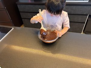 まずは温めた生クリームとチョコを混ぜ混ぜ